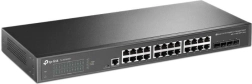 JetStream L2+ : Visokozmogljivo upravljano stikalo, idealno za pospešene in zanesljive omrežne povezave z 24 gigabitnimi vrati RJ45 in 4 režami 10GE SFP+.