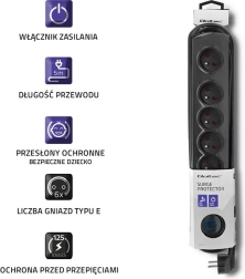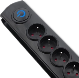 Ta prenapetostna letva je idealna rešitev za urejanje kablov pri pisalni mizi, televizorju ali v kuhinji. Zahvaljujoč 6 vtičnicam lahko hkrati priključite več naprav, 5 m dolg kabel pa nudi svobodo postavitve. Osvetljeno nožno stikalo Quick Switch omogoča udoben vklop in izklop brez sklanjanja.