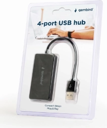 Črn USB hub s štirimi priključki omogoča enostavno hkratno priklopitev več naprav. Z hitrim USB 2.0 prenosom podatkov do 480 Mb/s je idealen za učinkovito delo.