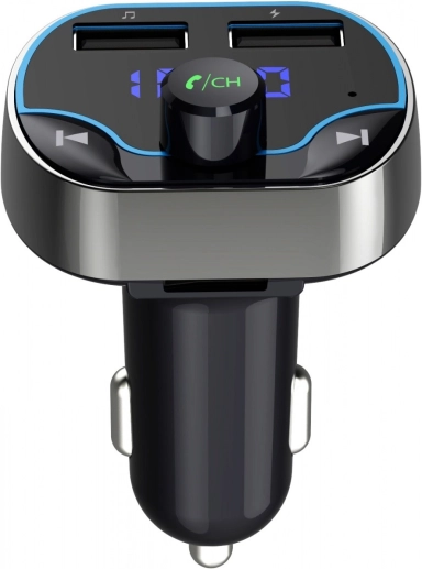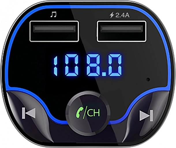 Naprava ima dva USB priključka za sočasno polnjenje in predvajanje glasbe, intuitivno upravljalno kolesce in jasen LED zaslon za enostavno nastavitev frekvence. Kompaktna zasnova za vžigalnik 12/24 V prihrani prostor in je združljiva z večino vozil.