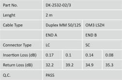 LSOH ovoj zmanjšuje dim in halogene pri gorenju, kar povečuje varnost v notranjih prostorih. Kabel premera 3 mm z duplex izvedbo in barvnim označevanjem konektorjev olajša namestitev in upravljanje ožičenja.