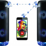 V notranjosti sta 2 × 4" (102 mm) zvočnika z bass‑refleksom za izrazitejše base in čiste višine v območju 40 Hz – 20 kHz. Vgrajena Li‑Ion baterija 1200 mAh zagotovi 4–8 ur glasbe, polnjenje poteka udobno prek micro USB. Upravljanje omogočajo multimedijski gumbi, vrtljivo kolesce in pregleden LED-zaslon. RGB osvetlitev zvočnikov in podstavka lahko z dolgim pritiskom gumba M izklopite.