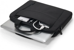 Torba je opremljena z oblazinjenim predalom za prenosnik, kar zagotavlja večjo zaščito vaše naprave. Za udobje pri nošenju skrbita oblazinjen ročaj in nastavljiv ramenski pas. Poleg tega je na voljo zadnji prostor za shranjevanje dokumentov ter sprednji žep za mobilne dodatke, ki olajša dostop do pomembnih predmetov.
