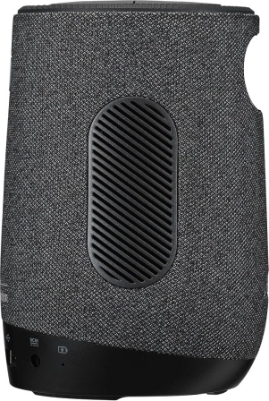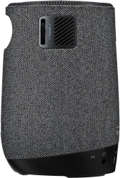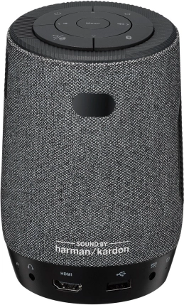 Tekstilno valjasto ohišje z upravljanjem na vrhu je enostavno za prenašanje, medtem ko vgrajen zvočnik harman/kardon (odvisno od modela) ponudi čist in presenetljivo poln zvok. Povezljivost je preprosta – na voljo so HDMI za video vire, USB za napajanje ali medije ter Bluetooth za brezžični zvok. Brezžično zrcaljenje iz mobilnika omogoča hitro deljenje vsebin.