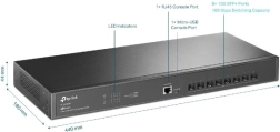 TP-Link je predstavil upravljano stikalo vrhunske kakovosti, opremljeno z osmimi režami SFP+ s hitrostjo 10 Gb/s. To stikalo nudi prenosno kapaciteto z neblokirnim preklapljanjem na ravni 160 Gb/s, kar je idealno za zahtevne visokohitrostne in obsežne omrežne prenose.