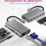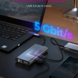 Kompaktna priklopna postaja ICY BOX za USB‑C razširi vaš prenosnik z obsežno povezljivostjo. Ponuja dvojni video izhod HDMI in VGA, 3× USB 3.0, gigabitni LAN, čitalnika SD/microSD, kombinirani 3,5‑mm avdio priključek in Power Delivery do 100 W. Vrhunsko aluminijasto ohišje zagotavlja vzdržljivost in slog.