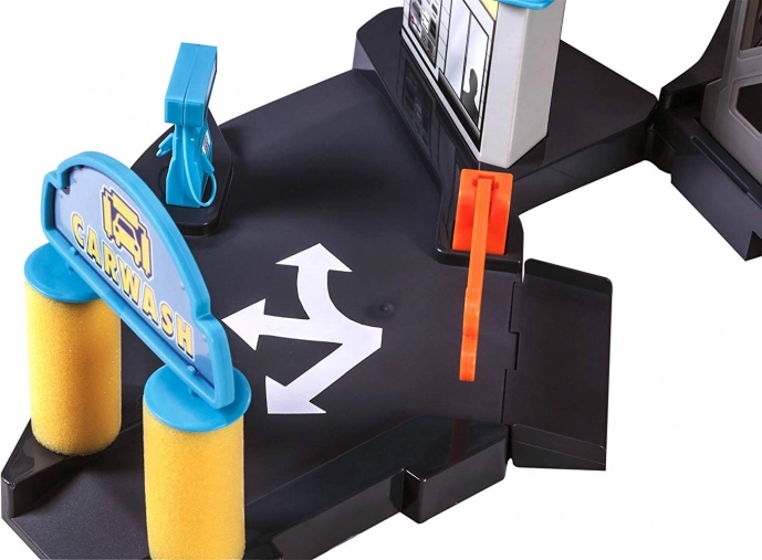 Set vključuje postajo avtopralnice in dodatke, ki razširjajo možnosti igre. Priloženi kovinski model 1:43 omogoča takojšnje igranje.