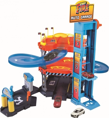Ta barvita večnivojska garaža iz linije Street Fire otrokom prinaša številne scenarije za ustvarjalno igro. Zahvaljujoč ročnemu dvigalu lahko preprosto premikate avto med nadstropji, medtem ko spiralna klančina poskrbi za hitre spuste in tekočo vožnjo. Vključeni sta tudi avtopralnica in kovinski model v merilu 1:43, zato se zabava lahko začne takoj po razpakiranju.