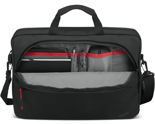 Praktična in stilska torba ThinkPad Essential Plus 16 Topload (Eco) ponuja zanesljivo zaščito za 16" prenosnik, premišljeno organizacijo dodatkov in udobno nošenje zahvaljujoč oblazinjeni notranjosti, nastavljivemu pasu in vzdržljivi zasnovi.