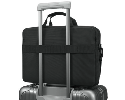 Zaradi oblazinjenih predalov, hitrega dostopa preko sprednjega žepa na zadrgo in nastavljivega ramenskega pasu imate vse pomembno pri roki in na varnem. Vgrajen trak za namestitev na ročaj kovčka olajša potovanje.