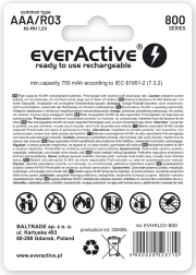 Polnilne baterije AAA (R03) s kapaciteto 800 mAh prispejo prednapolnjene v tehnologiji »ready to use«, zato so pripravljene za takojšnjo uporabo. Ponuja jo visoko zanesljivost in stabilno delovanje v napravah z pogostim in visokim odjemom energije.