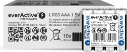 Zanesljive alkalne baterije AAA znamke everActive iz serije Pro Alkaline za profesionalno uporabo. Ponašajo se s kapaciteto približno 1250 mAh, dolgo življenjsko dobo do 10 let in stabilno zmogljivostjo za zahtevne in vsakodnevne aplikacije.