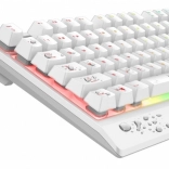 - Stikala z mehanskim občutkom: Tipkovnica uporablja batna stikala, ki posnemajo mehanska stikala in zagotavljajo natančen, hiter pritisk z dolgo življenjsko dobo več kot 12 milijonov klikov.