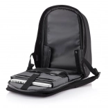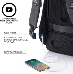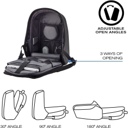Pameten mestni nahrbtnik z zaščito proti kraji in premišljeno organizacijo. Ponuja skrite zadrge in žepe z RFID-zaščito, material, odporen proti prerezu in vodi, oblazinjene predale za 15,6" prenosnik in 12,9" tablico ter integriran USB-priključek za polnjenje. Ergonomske naramnice, odsevni elementi in možnost odpiranja pod kotom 180° naredijo nahrbtnik idealnega sopotnika za potovanja in vsakodnevno vožnjo v službo.