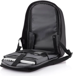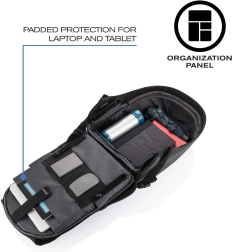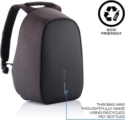 Varno potujte in se vozite v službo z nahrbtnikom XD DESIGN Bobby Hero XL v elegantni črni barvi. Ponuja antikradljivo zasnovo z odpiranjem s hrbtne strani, skrite zadrge in RFID žepe, material, odporen proti rezanju in vodi, ergonomske naramnice ter bogato notranjo organizacijo z mestom za prenosnik 17″ in tablico 12,9″. Vgrajen USB priključek, odsevni elementi in material iz recikliranega RPET ga naredijo idealno izbiro za mesto in potovanja.