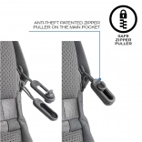 Posebna zasnova nahrbtnika, ki ga je mogoče odpreti le z zadnje strani, zagotavlja zaščito pred krajo.