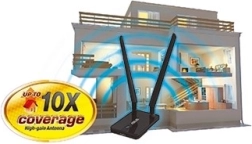 Z nastavljivim kablom je mogoče resnično izboljšati sprejem. Zahvaljujoč priloženemu podaljšku lahko vmesnik poljubno postavite za optimalen signal. Visokodonosne odstranljive antene s 5 dB omogočajo do 10-kratno povečanje dosega signala v primerjavi z običajnimi vmesniki.