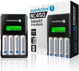 Črn polnilec everActive NC-450 je izdelan iz kakovostne ABS plastike, ki zagotavlja visoko odpornost in estetski videz. Opremljen je s 4 neodvisnimi polnilnimi kanali, kar omogoča polnjenje različnih kapacitet in velikosti Ni-MH baterij (AAA/R03 in AA/R6).