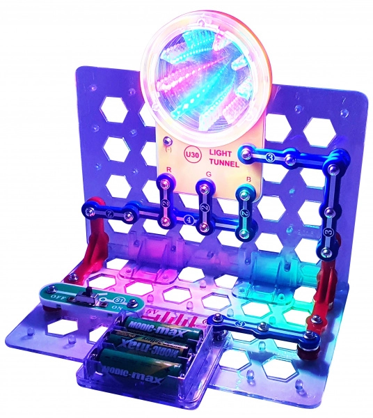 Eksperimentirajte z optičnimi iluzijami in vrtečimi se svetlobnimi moduli. Otroci bodo razumeli, kako v praksi delujejo svetloba, barve in rotacija – zabavno in varno.