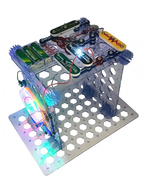 Vse dele preprosto pripnete na prozorno mrežico. Gradnja je hitra, pregledna in idealna za prve korake v elektroniki.