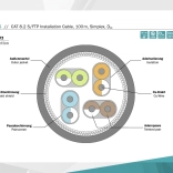Brezhalogenski plašč LS0H izpolnjuje stroge varnostne norme (IEC 60332-3-24, FRNC-C, LSZH-3) in skupaj z razredom reakcije na ogenj CPR Dca je primeren za fiksne namestitve v stavbah. Kabel je v celoti skladen z ISO/IEC 11801, DIN EN 50173 in DIN EN 50288-12-1, kar zagotavlja združljivost in dolgoročno zanesljivost.