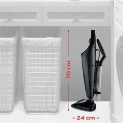 Lahka konstrukcija in ergonomska zasnova omogočata enostavno upravljanje tudi pod pohištvom. Poseben nastavek za preproge prinaša hitro in učinkovito osvežitev preprog in tekačev.