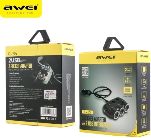 Awei C-3S je kompaktni avtomobilski adapter, ki vaš 12–24V vžigalnik spremeni v univerzalno napajalno vozlišče. Tri vtičnice za avtomobilski vžigalnik, dopolnjene z dvema USB vratoma, omogočajo napajanje in polnjenje do petih naprav hkrati – od navigacije in avtomobilske kamere do telefona ali tablice.