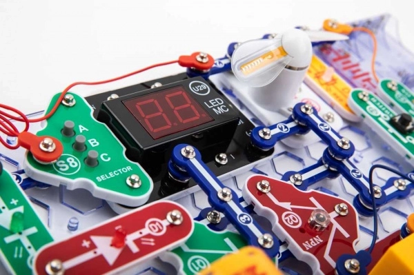 - 1× plošča, 35× komponent (npr. letalo, mini avto, zvočnik, detektor gibanja, motor z zobniškim prenosom), 1× priročnik (za prenos na spletu)