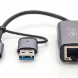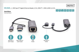 Razširite možnosti svojega prenosnika ali namiznega računalnika z Digitus USB-C in USB-A adapterjem za RJ45 2.5 Gigabit Ethernet, ki omogoča povezavo z internetom s hitrostjo do 2,5 Gbps in podpira Plug and Play.