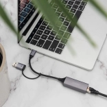 Digitus USB-C in USB-A adapter na RJ45 2.5 Gigabit Ethernet je idealen za razširitev povezave vaše naprave z omrežnim vmesnikom s hitrostjo do 2,5 Gbps. Ta adapter podpira širok spekter operacijskih sistemov, vključno z Windows, macOS, Linux, Android in iOS. Zaradi kompaktnih dimenzij in elegantne aluminijaste zasnove je primeren za uporabo na poti in nudi visoko odpornost in učinkovitost.