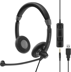 Slušalke z dvojnim naglavnim trakom in mikrofonom z odpravljanjem šumov, združljive z Microsoft Teams in drugimi vodilnimi UC rešitvami. Opremljene so s 3,5-mm vtičem in USB adapterjem za enostaven nadzor klicev.