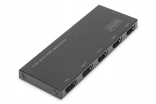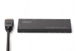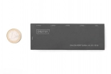 Kompakten HDMI razdelilnik DIGITUS razdeli en HDMI vir na do štiri zaslone v ločljivosti 4K/60 Hz. Ponuja polno prepustnost 18 Gbps, podporo za HDR, 3D in HDCP 2.2, napajanje prek Micro USB in trpežno ultra tanko kovinsko ohišje. Idealno za TV, projektorje in digitalno signalizacijo v načinu 1×4.
