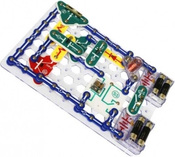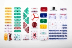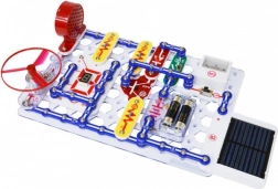 Deli se pritrdijo na osnovno ploščo s snap kontakti. Barvno razlikovanje in opisi komponent olajšajo orientacijo tudi otrokom od 8 let.