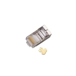 Univerzalni prehodni konektor RJ45 8P8C z oklopom STP za kable kategorije Cat 5e. Zahvaljujoč prehodni zasnovi omogoča hitro in natančno montažo, enakomerno razporeditev žil in zanesljivo stiskanje z vizualnim nadzorom zaporedja vodnikov.