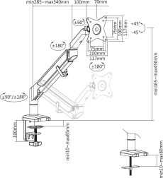 Ergonomski nosilec za monitor ponuja odlično rešitev za pisarne in domače okolje. Omogoča enostavno namestitev zahvaljujoč standardu VESA: 75x75, 100x100 mm. S pomočjo plinske vzmeti in nastavljivih členov omogoča nagibanje, vrtenje in nastavitev višine, kar povečuje udobje in vidljivost med delom. Prednosti nosilca: