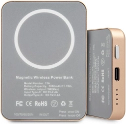 Uživajte v udobju brezžičnega polnjenja zahvaljujoč temu sijajnemu dizajnu v zlati barvi. Indukcijski powerbank blagovne znamke Guess se zlahka pritrdi na združljive telefone prek močne magnetne povezave. Njegova kapaciteta 3000mAh omogoča hitro in učinkovito polnjenje vaših naprav.