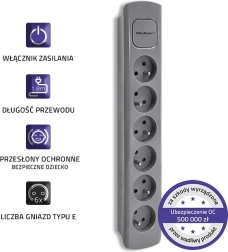 Najdite prostor za vse svoje naprave s to sivo razdelilno letvijo, ki ponuja šest vtičnic in dolžino kabla 1,8 metra. Primerna je za uporabo v gospodinjstvih in pisarnah, kjer potrebujete učinkovito organizacijo kablov.