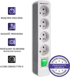 Ta podaljšek je zasnovan tako, da izpolni vaše vsakodnevne potrebe doma ali v pisarni, obenem pa prinaša eleganco in preprostost. Na voljo je z 4 vtičnicami in dolžino 1,8 metra, kar zagotavlja zadosten doseg. Osvetljeno stikalo Quick Switch še dodatno olajša uporabo, saj omogoča hitro izklapljanje in vklapljanje naprav z enim dotikom.