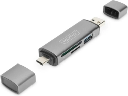 Ta kompaktni čitalnik kartic z vgrajenim USB vozliščem je idealen za potovanja in omogoča neposredno varnostno kopiranje podatkov brez potrebe po povezavi s prenosnikom. Vozlišče lahko priključite prek USB-A (USB 3.0) ali USB-C konektorja, kar ponuja prilagodljivost pri uporabi z različnimi napravami. Poleg tega omogoča hkratno uporabo čitalnika kartic in USB vozlišča, kar pomeni, da lahko datoteke preprosto prenašate ali kopirate med obema vratoma.