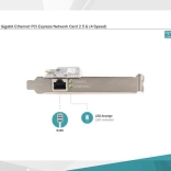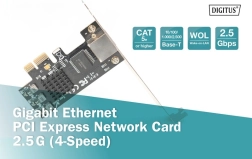 PCIe Gigabit kartica DIGITUS ponuja podporo različnim standardom za zagotavljanje prilagodljive povezljivosti. Zagotavlja združljivost s standardoma IEEE802.3u za Fast Ethernet in IEEE802.3ab za Gigabit Ethernet s hitrostmi do 2,5 Gbps. Vključuje polni dupleks z nadzorom pretoka po standardu IEEE802.3x ter funkcijo Wake-on-LAN za enostavnejšo povezavo in upravljanje omrežja.