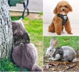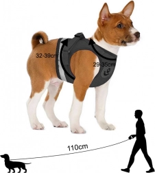 Zaradi enostavne nastavitve trakov lahko oprsnico natančno prilagodite obliki telesa vašega ljubljenčka. Odsevni elementi povečajo vidnost v mraku in temi, za zanesljivo pripenjanje pa poskrbi povodec s kovinskim karabinom, ki je priložen v kompletu.