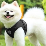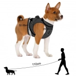 Široki nastavljivi trakovi za natančno prileganje ter snemljiv povodec s kovinskim karabinom za varno pripenjanje.