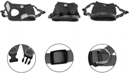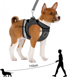 Odsevni rob za boljšo vidnost in varnost. Priložen je snemljiv povodec s kovinsko karabino za zanesljivo pripenjanje.
