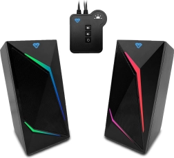 Bluetooth igralni zvočniki Cobra Pro Urion 2.0 prinašajo dvopasovni stereo zvok z izhodno močjo RMS 8W. Uporabite Bluetooth 5.0 za brezžični sprejem glasbe z različnih naprav. Druga možnost je klasična ožičena povezava za popolno zvočno reprodukcijo.