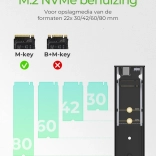 S priloženim kablom USB‑C in adapterjem USB‑A ohišje povežete z raznoliko paleto naprav – od sodobnih prenosnikov do namiznih računalnikov. Podpora običajnim dolžinam M.2 (2230/2242/2260/2280) zagotavlja združljivost z večino NVMe SSD.