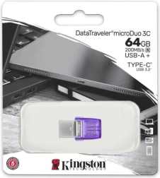 DataTraveler microDuo 3C je praktičen pomnilnik za vsakodnevno delo in potovanja. Zahvaljujoč priključkoma USB‑C in USB‑A preprosto prenašate fotografije, videe in dokumente med pametnim telefonom, tablico in računalnikom brez kablov ali interneta. Vmesnik USB 3.2 Gen 1 zagotavlja hitro delo z velikimi datotekami.