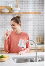 Vodovodarja ne potrebujete: po namestitvi adapterja filter le pripnete. Mehanizem Quick Twist poenostavi menjavo vložka, števec pa opomni na zamenjavo.