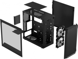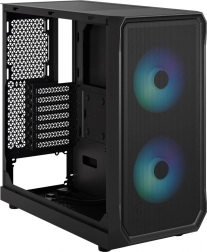 Focus 2 RGB z jasno tonirano bočno stranico iz kaljenega stekla je zasnovan tako, da iz razpoložljivega prostora iztisne maksimum. Odprta sprednja mrežasta površina z dvojico RGB ventilatorjev zagotavlja močan dovod svežega zraka in neposredno hlajenje ključnih komponent, kar se pozitivno odrazi v nižjih temperaturah in večji stabilnosti sistema.