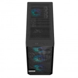 Podajte se po poti čistega pretoka zraka. Meshify 2 RGB Black TG Lite združuje oster, geometrijski dizajn s praktičnimi detajli za sestavljanje in vsakodnevno rabo. Sprednji panel iz goste mrežice maksimira dovod zraka, medtem ko bočna plošča iz kaljenega stekla brez vijakov poudari vašo sestavo.