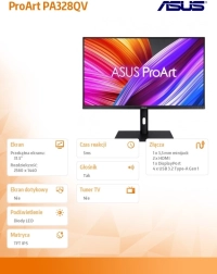 Ustvarjen za natančno delo z barvami: ASUS ProArt PA328QV prinaša uravnoteženo kombinacijo velike 32" diagonale, fine ločljivosti WQHD (2560 × 1440) in IPS tehnologije za stabilne barve in široke kote gledanja. Zahvaljujoč 100 % sRGB in konsistentni svetilnosti 400 cd/m² dobite zanesljivo sliko za urejanje fotografij, grafično oblikovanje in video.